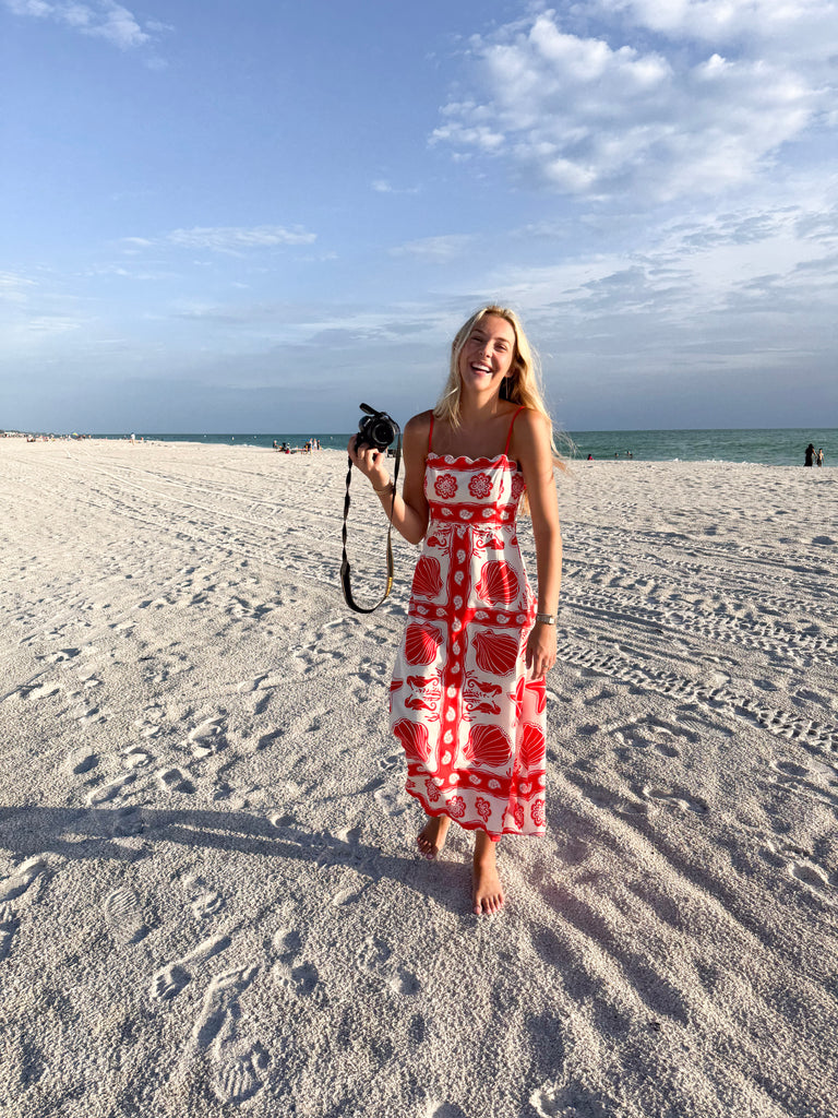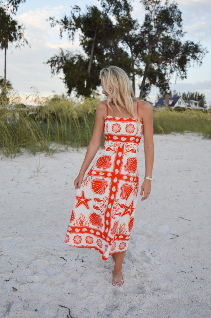Ainsley Shell Midi Dress is the dress your summer plans have been waiting for. With spaghetti straps, a flattering midi length, and playful cream and red tones, this dress brings a fresh pop of color to your wardrobe. The top has a scalloped bust and a side zip closure. Easy to wear and easy to love, it’s the ultimate warm-weather essential for stylish, social babes who love to stand out.