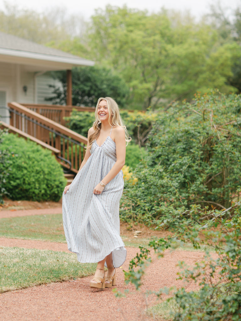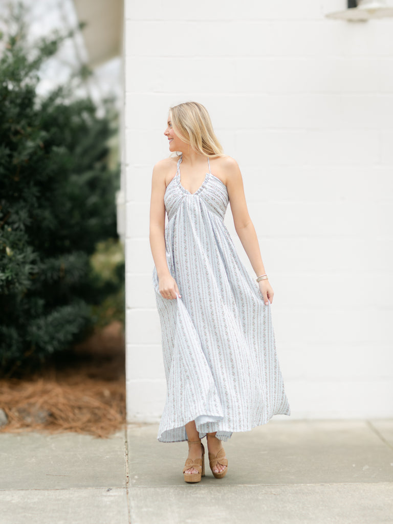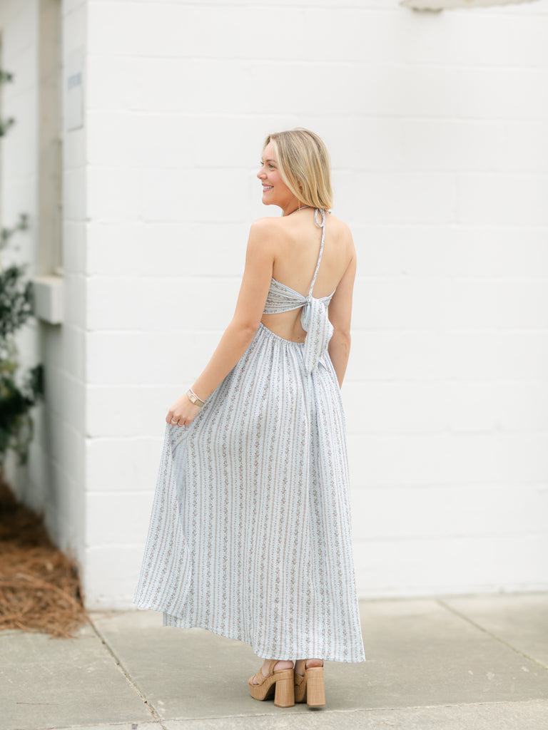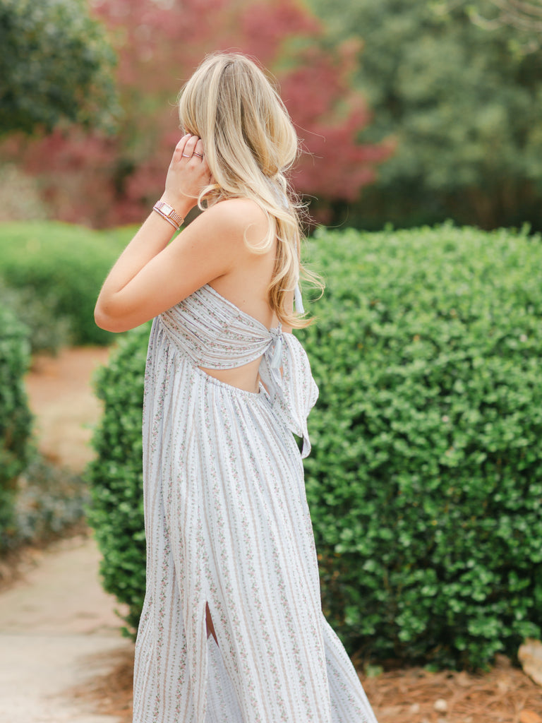 This stunning Everly Floral Maxi Dress features a beautiful floral striped print in a lovely periwinkle blue color. The V-neck and side slit offers a comfortable fit, perfect for warm weather. Wear for a day out or a special occasion. This dress is everything in one. Gorgeous!