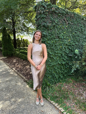 Reagan Satin Midi Dress- Mocha