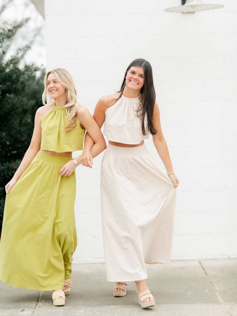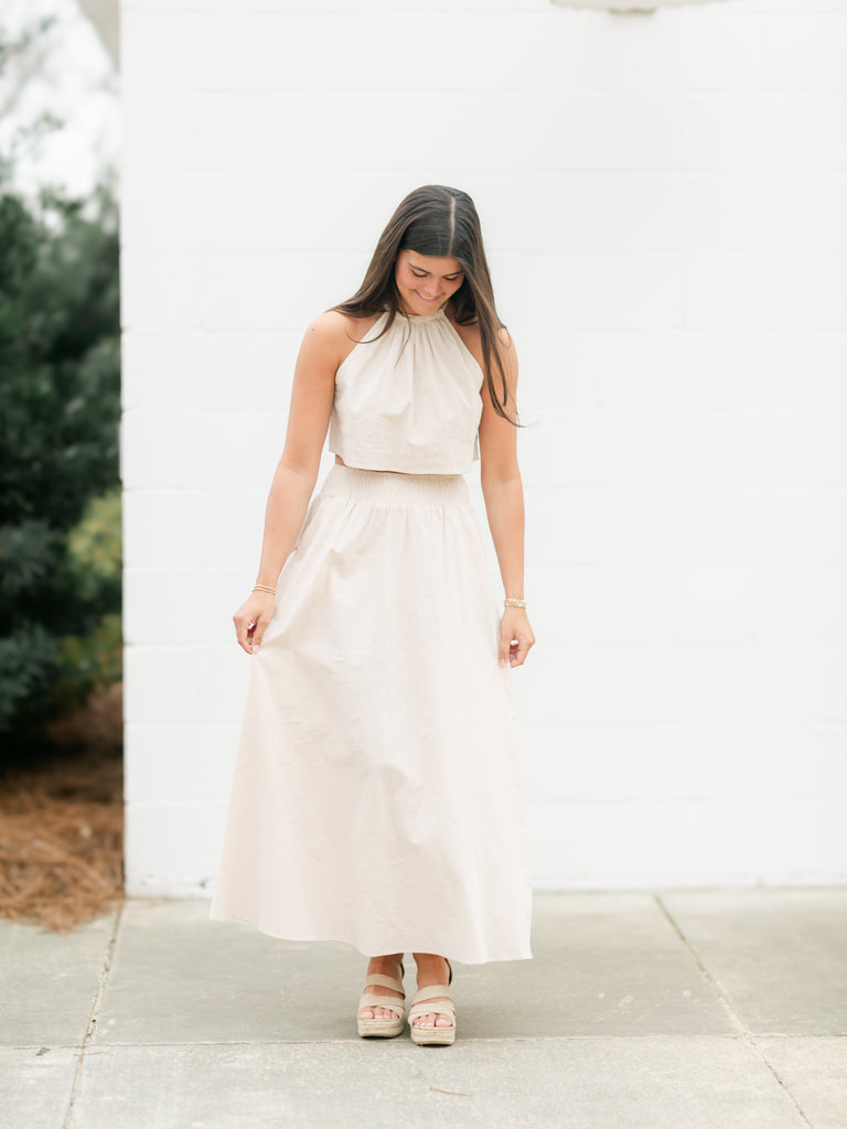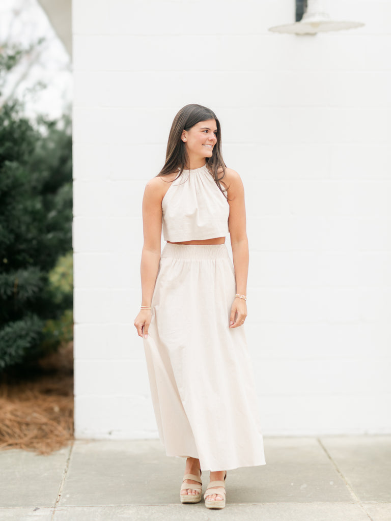 Kennedy Halter Top with Matching Maxi Skirt- Taupe