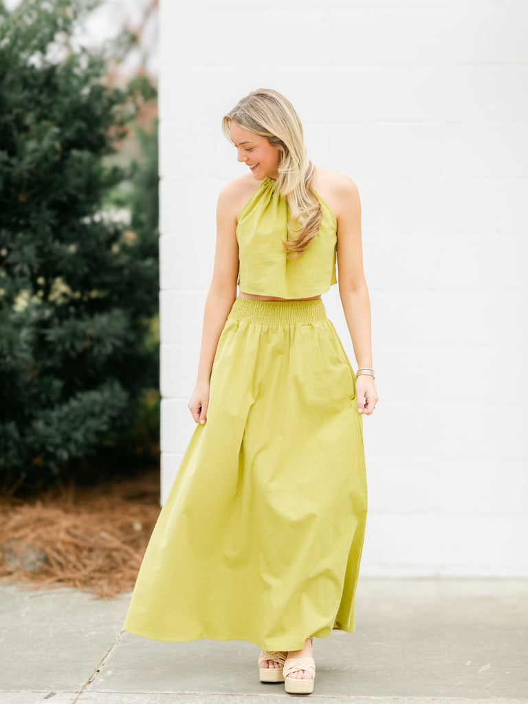 Kennedy Halter Top with Matching Maxi Skirt- Kiwi