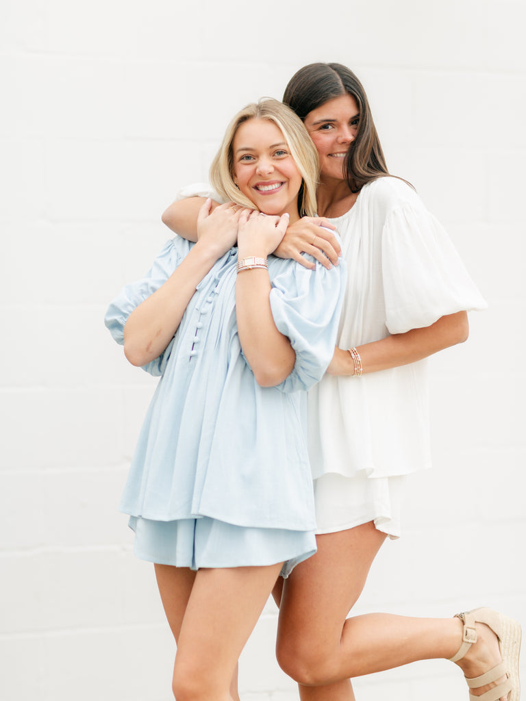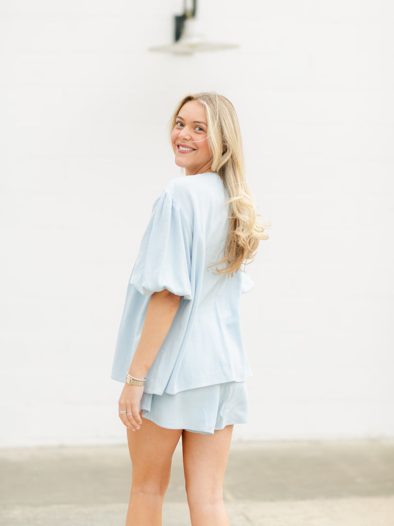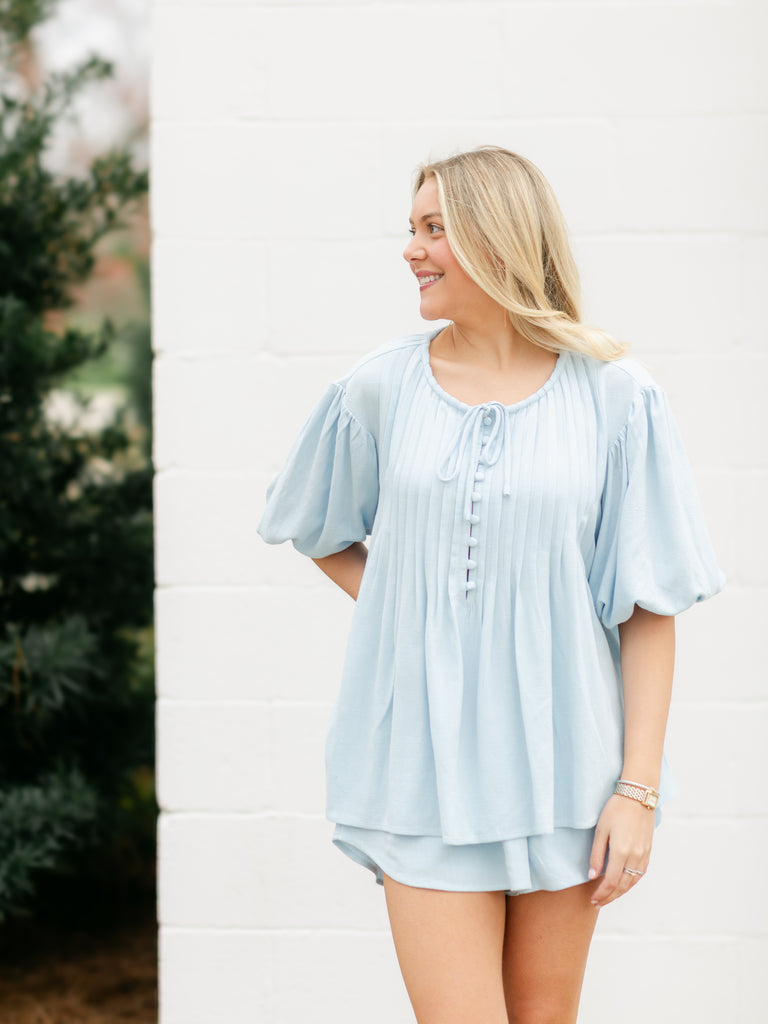 Melanie Pintuck Shorts and Top Set- Light Blue