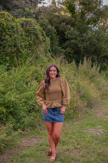 Bristol Poplin Top makes a statement in this smocked olive green color that’s as easy to wear as it is stylish. The puff sleeves and ruffle trim bring a touch of chic, while the cinched cuffs add just the right structure. Its smocked fit flatters every figure, making it your go-to blouse for both casual and dressed-up moments.